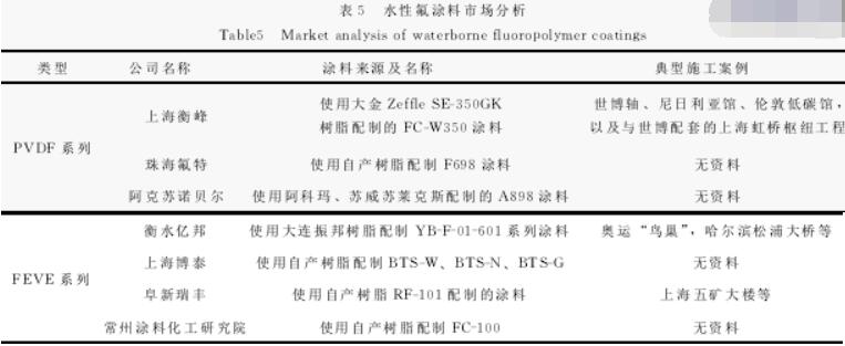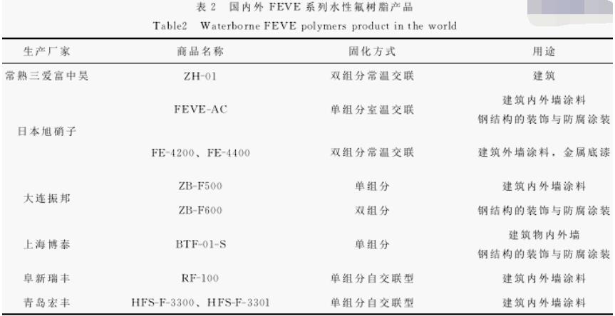 #1 引言 有机氟树脂是迄今为止发现的耐候性、耐久性最为优良的聚合物,随着人们环保意识的增强,各国对VOC(挥发性有机化合物)含量的限制日益严格,以有机溶剂作为成膜介质的溶剂型含氟聚合物涂料和高温固化含氟聚合物涂料的应用受到了一定的限制。自杜邦公司成功开发出聚四氟乙烯产品 (商标Teflon)以来,人们就开始了其水性化的研究历程。直到20世纪80年代,日本旭硝子 研制出了可常温固化的氟乙烯-烷基乙烯基醚 (FEVE)交替共聚物,这才标志着含氟聚合物的合成取得了决定性的突破,含氟聚合物涂料的研究和开发也随之进入了普遍适用性阶段。美国Dow 化学公司的Schmidt首先报道利用反应性氟树脂制成不粘性涂料。国外开发的水性氟聚合物涂料有水溶性、水分散性和乳液性等多种形态,但目前的水性氟聚合物涂料仍以水分散性为主。典型的水性氟涂料有由氟烯烃、乙烯基醚、含羧基化合物和水溶性氨基树脂共聚而制成的阴极电泳漆。日本在这方面的研究十分活跃,其大油墨公司的Kawamura S和HiBi T用fluonate乳液、环氧基硅烷做交联剂,获得了耐久性和不粘性良好的水性氟涂料,成膜温度为30~45℃。 以旭硝子、DIC、大金3家公司为代表,1982年至今发表 有 关 专 利100多 件,品 种 方 面 也 有 较 大发展。“十二五”规划提出的技术创新目标有:研发性能达到工业涂装要求的水性工业涂料;水性防腐涂料要向重防腐领域、大飞机、大舰船等推广。国内开发的水性氟聚合物涂料中,南昌航空工业学院研制出的NH-R水性氟涂料,大连振邦涂料公司在这方面也取得突破性进展,它以自身不能固化成膜的含氟乳液与一定比例的添加剂配制而成,具有较强的附着力、抗老化性、耐腐蚀性、耐候性和化学稳定性,并且施工方便,广泛用于航空、海洋、能源、电子和化工等领域。 #2 水性氟树脂 ##2.1 水性氟树脂的合成方法 制备水性氟涂料的关键是获得水性氟树脂。目前,水性氟树脂主要包括有机氟乳液及有机氟分散体,而水溶性的含氟聚合物尚不多见。制备水性氟树脂的技术主要有5种。 (1)乳液聚合法,即以含氟的乙烯基化合物进行自由基乳液聚合,或将含氟单体与不含氟烯烃单体共聚制得含氟聚合物乳液,这是最常见的方法; (2) “后乳化法”,即先在有机溶剂介质中合成氟树脂,然后使溶解的含氟聚合物在乳化剂的作用下成为分散体,或者通过中和反应制得氟聚合物水分散体。可以通过非自由基聚合的方法来制备氟树脂,这为氟树脂品种及功能的多样化提供了可行的途径; (3)悬浮聚合法,即在分散于水相的溶有引发剂的单体液滴中进行的自由基聚合法。它是早期的制造氟树脂的主要方法之一,目前逐渐呈现出为乳液聚合所替代的趋势; (4)通过分散体技术,即将含氟树脂粉末、颜填料、分散剂、增稠剂、成膜助剂和水等在适宜的设备中分散而形成水悬浮液,其要求先制得氟树脂的细微粉末,然后再水性化,无论是从制备过程还是产品性能来说,均不能满足现代涂料发展的要求,目前已很少使用; (5)原位乳液聚合法,是将刚性高分子链以分子水平均匀地分散在柔性分子中的一种聚合方法,是一种具有发展潜力的乳液聚合方法。上述制备水性氟树脂的方法各有其特点,应根据实际需要,选择不同的合成方法,选择合适的单体和严格的合成工艺,制得结构可控的和性能符合需要的氟树脂。 ##2.2 水性氟树脂的种类 水性氟树脂主要包括以下几种:丙烯酸全氟烷基乙基酯共聚物、丙烯酸N-乙基-N-乙酯共聚物、甲基丙烯酸全氟乙基酯共聚物、全氟丙烯共聚物和偏二氟共聚物。一般水性氟树脂均制备成乳液的形式,以单组分或双组分的形式在不同的方面进行应用。 ###2.2.1 氟改性丙烯酸乳液 对丙烯酸支链结构进行氟改性的技术得到氟改性丙烯酸乳液,合成方法比较简单,在实际应用中较多。但此方法得到的乳液由于只是支链含氟,氟含量一般在10%左右,在使用过程中虽然表现比普通丙烯酸要好,但并未达到氟碳涂料的高要求。 ###2.2.2 双组分常温固化氟乳液 ZH-O1水性氟碳树脂乳液是以三氟氯乙烯和其它功能性单体为原料,运用乳液合成技术制备的双组分常温交联的热固性聚合物,该氟乳液中的活性官能团羰基同酰肼类发生固化交联反应,具有较为规整的分子排列。虽然双组分水性涂料已有很大的发展,氟含量 (氧瓶燃烧法)达到50%以上,但其活化期短,且要在施工前现场混合,没有充分体现水性涂料使用方便的特点。因此,人们热切希望能够制得单组分室温交联的水性涂料。 ###2.2.3 热塑性单组分氟乳液 大金公司研制出ZEFFLE SE系列含氟聚合物水分散体为典型代表。可制备氟含量 (氧瓶燃烧法)为41%的含氟乳液。 ###2.2.4 室温交联氟乳液 旭硝子公司利用种子乳液聚合技术合成了单组分可室温交联的PFEVE与含羰基的双丙酮丙烯酰胺及其他丙烯酸单体聚合物,该类树脂简称为FEVE-AC。运用 种子乳液聚 合法可制备氟含 量(氧瓶燃烧法)为45%的含氟乳液。 ###2.2.5 水性氟弹性乳液 最新研制的水性氟弹性体聚合物引入分子内或分子间可能发生交联反应的官能团,采用部分水解的氨基硅烷作固化剂,优化其用量,单包装可以稳定贮存4个月。水性氟弹性涂料减少了大量的VOC,可以取代溶剂型涂料在汽车、化学、航空和其他工业领域中应用。相对于更广泛的应用领域和方便的施工方法,当前水性氟乳液研究的热点还是单组