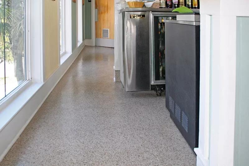 最后石英砂表面,应达到用手摸有细微粗糙的感觉,又有胶刮平后的光感。使彩色地面有一定的防滑作用。
