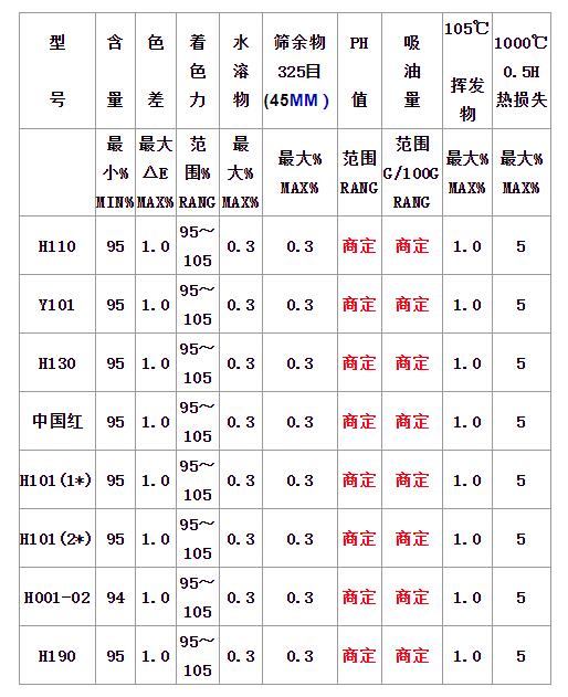 氧化铁红H110、Y101、H130、中国红、H101(1#、2#)、HO01-02、H190;§ 产品用途